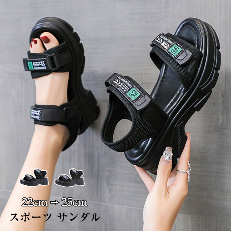 レディース スポーツサンダル 6cm 厚底 マジックテープ カジュアル スポサン 歩きやすい シンプル フットタイプ コンフォート サンダル 美脚 足長 2カラー 22 22.5 23 23.5 24