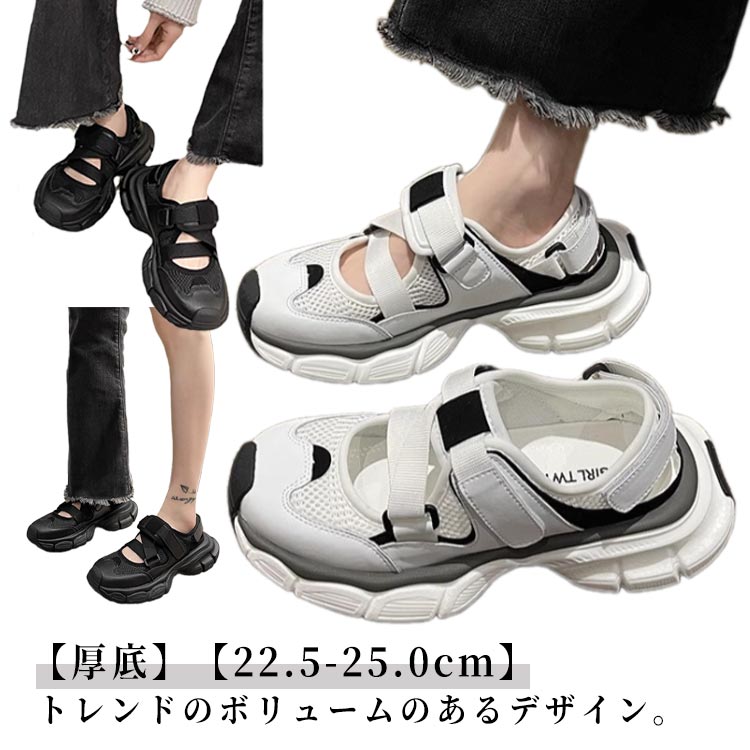 スニーカー スニーカーサンダル サンダル 厚底 厚底サンダル 夏 通気性 靴 スポーツサンダル 軽量 メッシュ ベルクロ カジュアル シューズ おしゃれ 歩きやすい 美脚 幅広