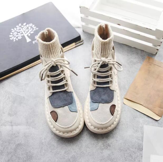 ソックスブーツ レディース ショートブーツ 秋冬 森ガール ヒール3cm フラットシューズ 大きいサイズ 美脚 厚底 疲れない 安定感