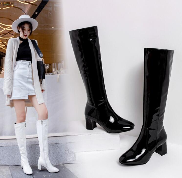 レディースブーツロングブーツニーハイブーツエナメル大きいサイズストレッチ素材ロング丈ダンス舞台靴 レディース靴 ブーツ その他