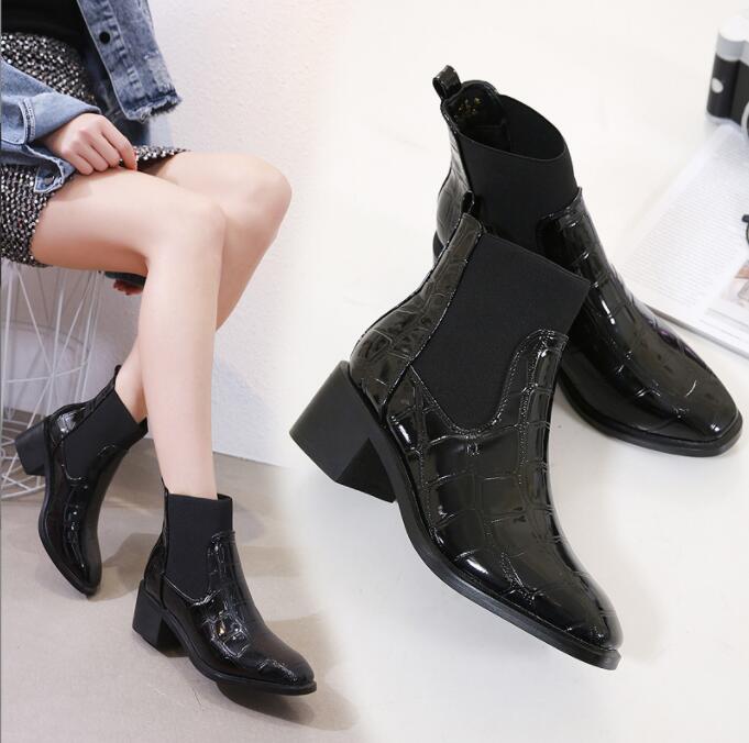 ブーツ ショートブーツ ストレッチ太ヒール レディース チャンキーヒール ミドル丈 ショートブーツ ハイヒール ビール6cm ストレッチ 黒 疲れにくい