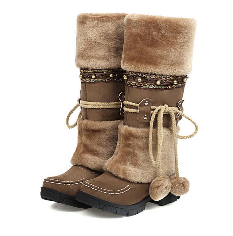 レディースブーツムートンブーツ レディース ボア スノーブーツ ポンポン付きロングブーツ 裏起毛 シューズローヒール ぺたんこ ブーツ 女性 歩きやすい