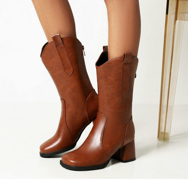 レディースブーツ ショートブーツ 厚底ブーツハイヒール 太いヒール チャンキーヒール スクエアトゥ歩きやすい 疲れない