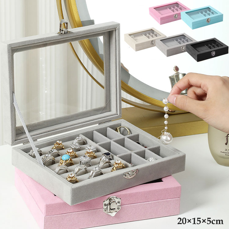 アクセサリーケース ジュエリーボックス 透明フタ 大容量 ジュエリー収納 アクセサリー収納 仕切り付き 小物入れ おしゃれ ネックスレス ピアス 指輪 小さい プレゼント ギフト 5色 20×15×5