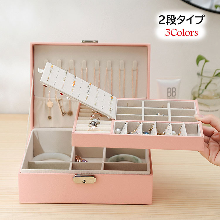 5色 大容量 アクセサリーケース ジュエリー収納 ジュエリーボックス 2段 カギ付き アクセサリー収納 仕切り付き 小物入れ おしゃれ ネックスレス ピアス 指輪 小さい プレゼント ギフト
