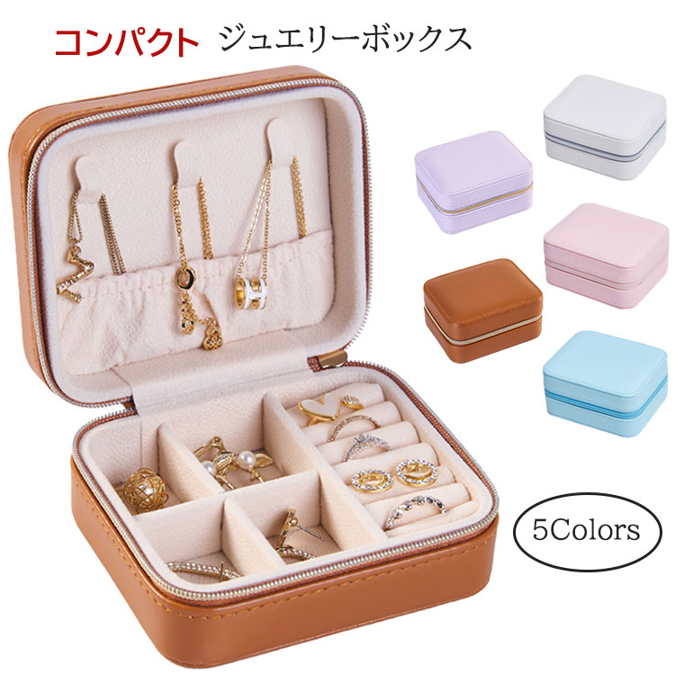 コンパクト ジュエリーボックス 旅行 出張用 アクセサリーケース 大容量 5色 ジュエリー収納 アクセサリー収納 仕切り付き 小物入れ お出かけ便利 おしゃれ ネックスレス ピアス 指輪 プレゼント