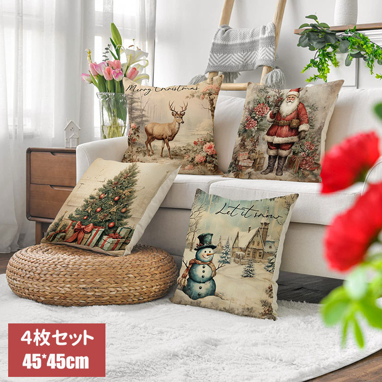 クッションカバー クリスマス 抱き枕カバー 45 × cm 亜麻 装飾 サンタクロース 鹿 クリスマスツリー インテリア パーティー お部屋 雑貨 車用小物 リース トナカイ 雪 結晶 クリスマ
