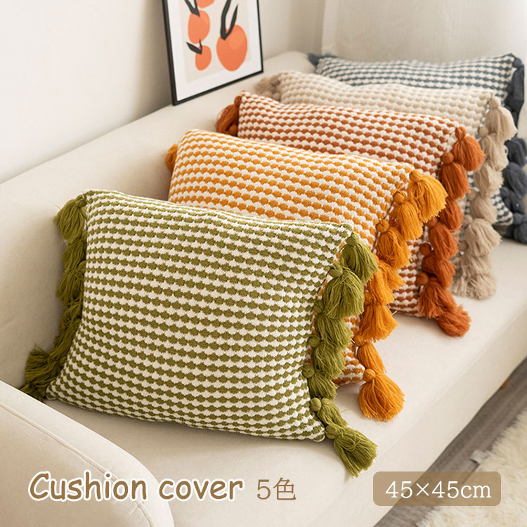 クッションカバー ニット 北欧 45×45cm 5色 おしゃれ 可愛い フリンジ付き 四角 オールシーズン インテリアファブリック エレガント ソファー用クッションカバー ソファ背当て 装飾枕カバー
