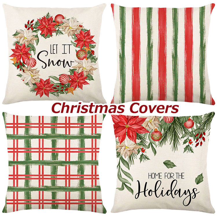 クリスマスカバー 抱き枕用 クッションカバー クリスマス装飾 フラワー ストライプ柄 チェック柄 インテリア パーティー お部屋 雑貨 おしゃれ クリスマスパターン オーナメント レッド グリーン 4