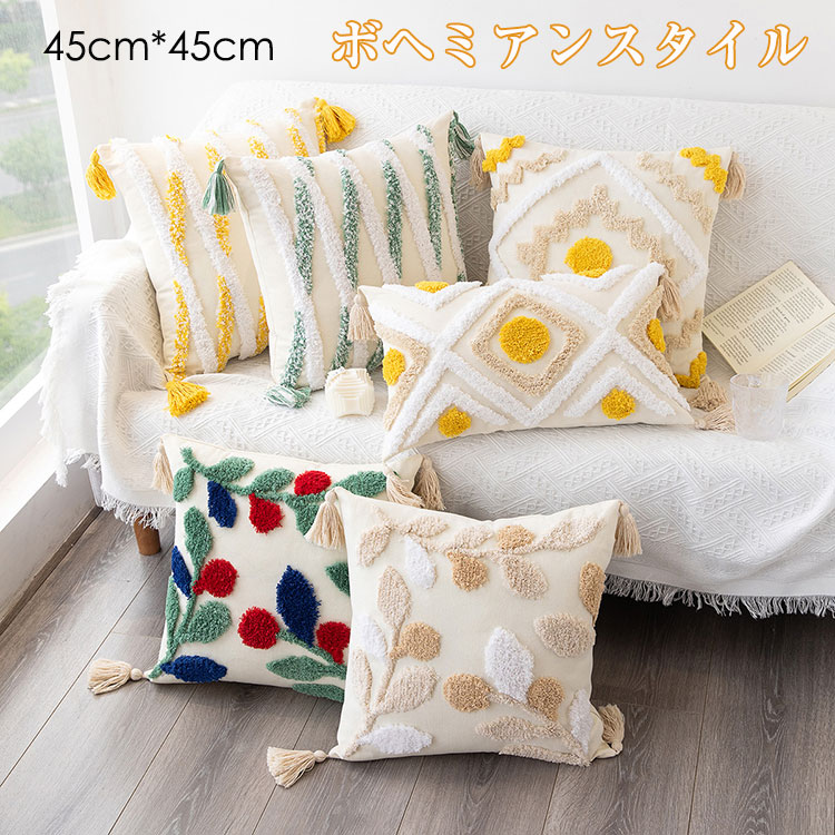 クッションカバー ボヘミアン 45×45cm 10タイプ おしゃれ 可愛い 四角 オールシーズン 春 夏 秋 冬 インテリアファブリック エレガント ソファー用クッションカバー ソファ背当て 装飾枕カ