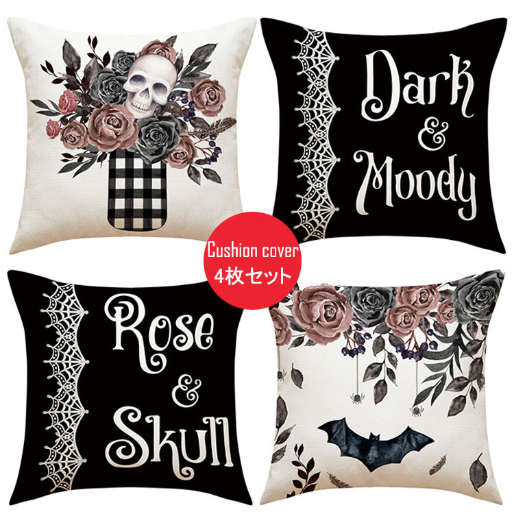 ハロウィン 装飾 部屋飾り クッションカバー バラ コウモリ 45*45cm ソファークッションカバー おしゃれ 四角い 雰囲気満点 パーティー イベント
