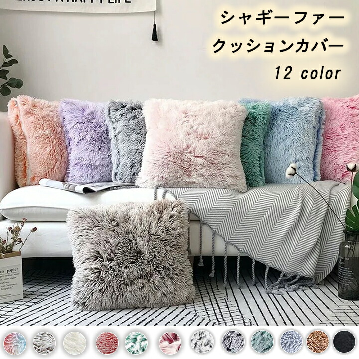 3B45 ふわふわ シャギーファークッションカバー もこもこ ふわふわ生地 45x45cm おしゃれ ファスナー クッション カバー かわいい インテリア 正方形 オールシーズン 伸縮性 替えカバー
