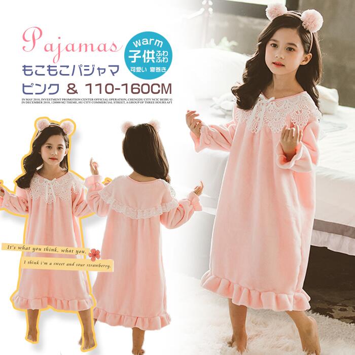もこもこパジャマ 子供 長袖 女の子 ドレス プリンセス キッズ かわいい レース おしゃれ お姫様 もこもこ ガールズ ナイトウェア 可愛い 寝巻き 子供服 110-160cm ピンク 秋冬