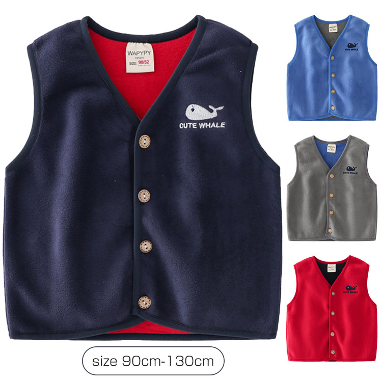 子供服 フリース ベスト 男の子 女の子 キッズ ボアベスト 秋冬 アウター あたっか 軽量 柔らかい トップス ユニセックス こども 赤ちゃん 保育園 幼稚園 小学生 日常着 ルームウェア 90 1
