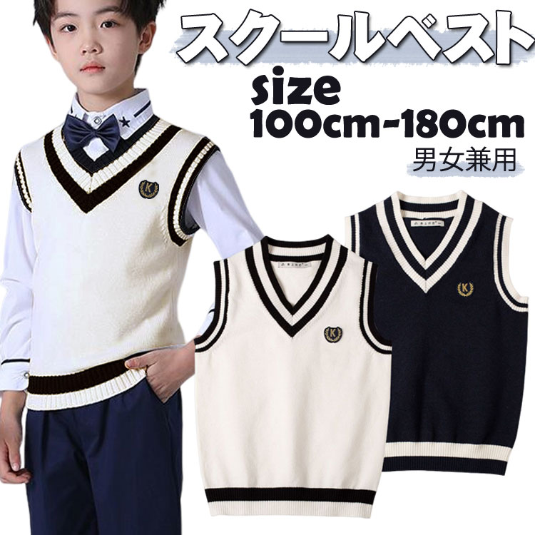ニットベスト Vネック スクールベスト ニットセーター 無地 女の子 男の子 男女兼用 スクールセーター 制服 プルオーバー ライン入りノースリーブ 学生服 トップス アウター コスチューム ジュニア