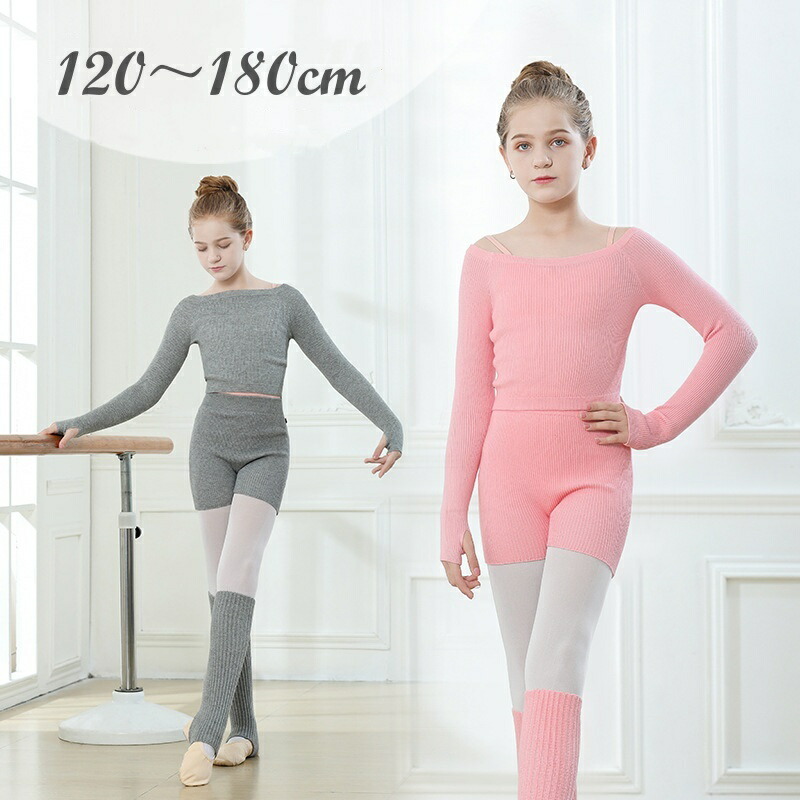 ニットトップス パンツ レッグウォーマー 練習着 セーター 子供 ジュニア 女の子 バレエ用品 リブトップス リブニット ヨガ 防寒 温か 寒さ対策 バレエ用品 ダンス パステルカラー