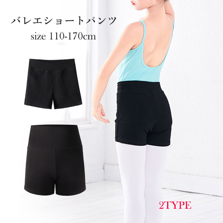 バレエショートパンツ 2タイプ キッズ 女の子 大人 レディース カジュアル 三分丈 ブラック 黒 ガールズ 110 120 130 140 150 160 170cm ホットパンツ パンツ ダンスパ