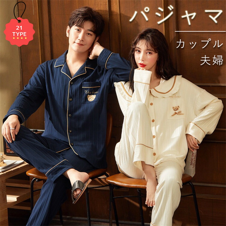 パジャマ レディース メンズ 冬 冬用 ペア ばくね ルームウェア 大きいサイズ M~2XL かわいい 長袖 秋 外出 キャラクター 結婚祝い プレゼント ペアパジャマ 可愛い カップル