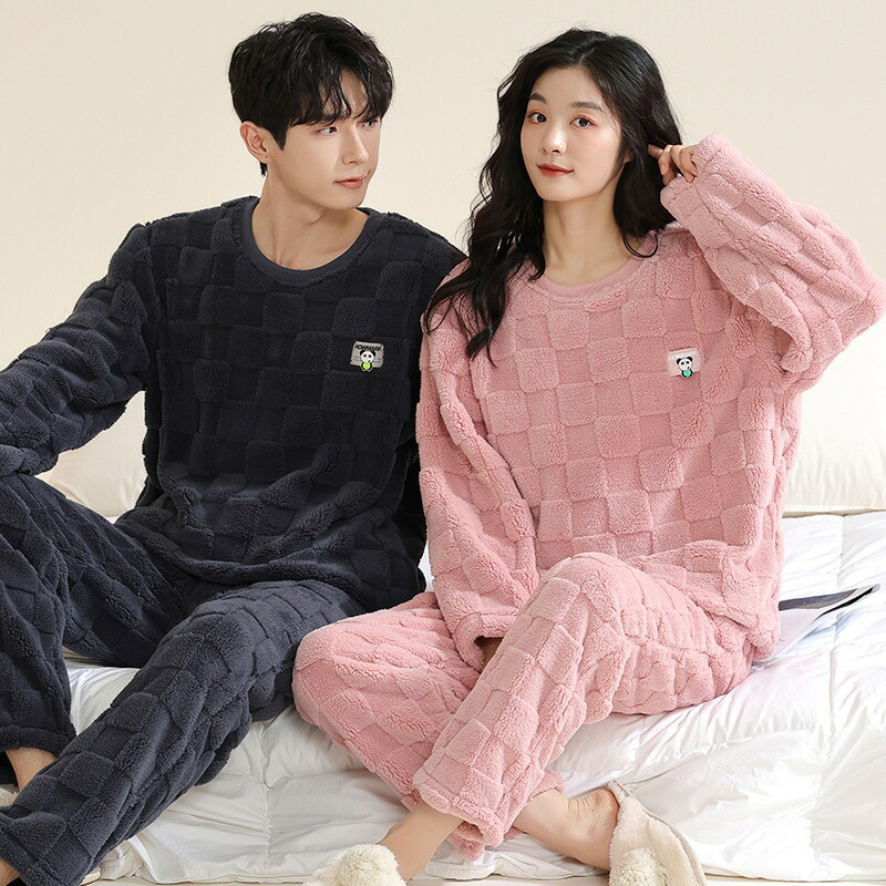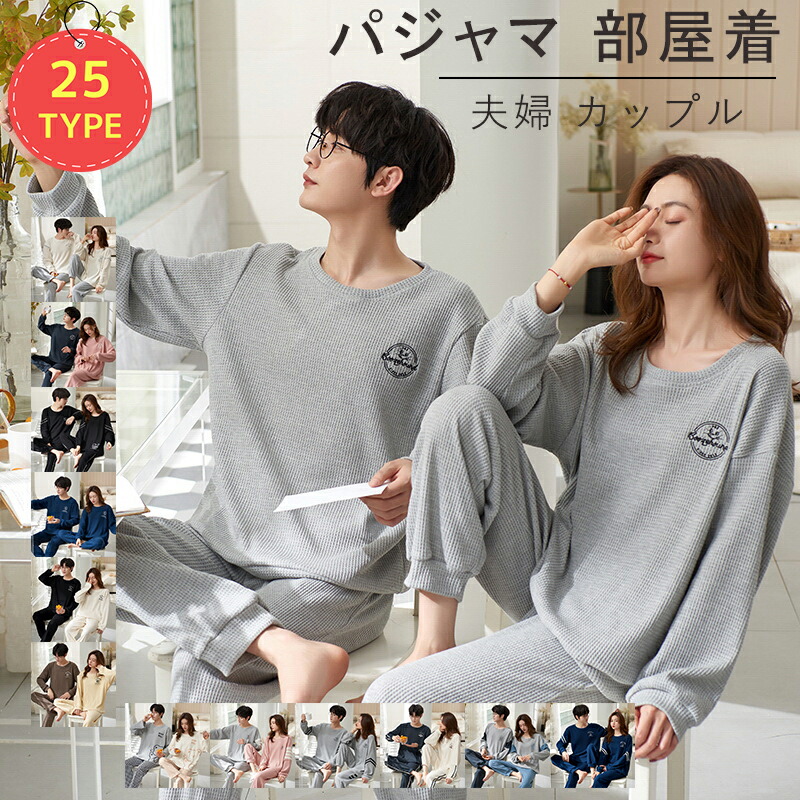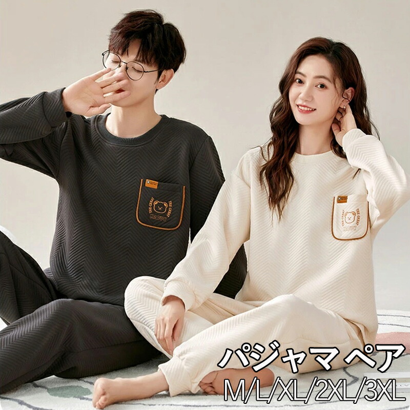 パジャマ レディース メンズ ラウンドネック 秋冬 冬用 ペア ルームウェア 大きいサイズ M~2XL かわいい 長袖 秋 冬 外出 結婚祝い プレゼント ペアパジャマ カップル