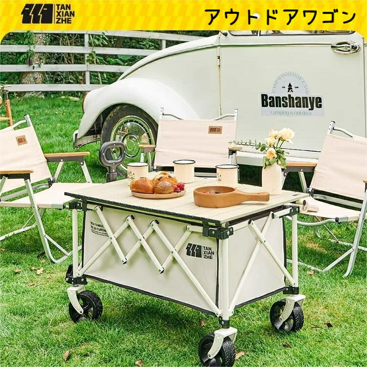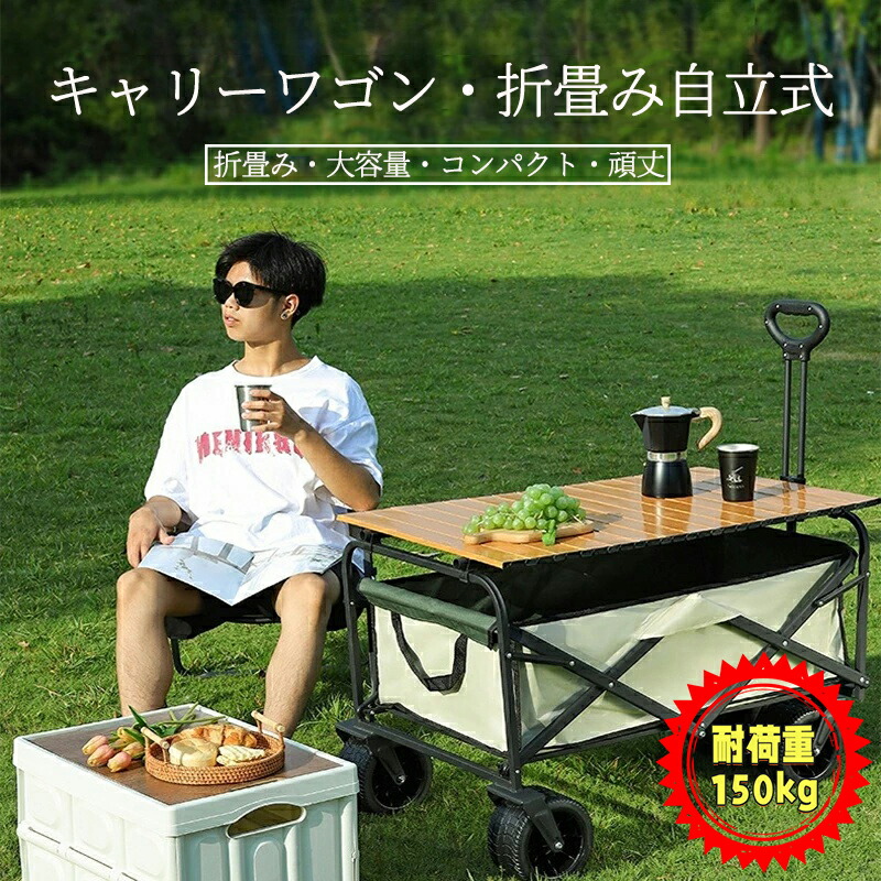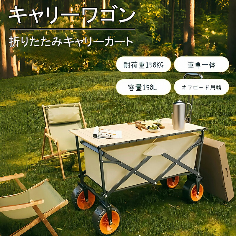 キャリーワゴン 折りたたみキャリーカート テーブル付き 大容量 150L アウトドア キャンプ レジャー BBQ 運動会 コンパクト 耐荷重150kg ビーチ 釣り キャンプ用品 荷物運び