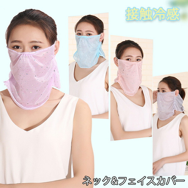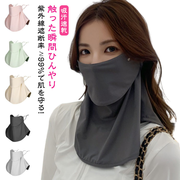 耳掛け 夏の日差しから顔と首元をガード スカーフ 涼しい 日焼け防止 夏用 冷感 ひんやり フェイス&ネックカバー
