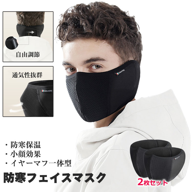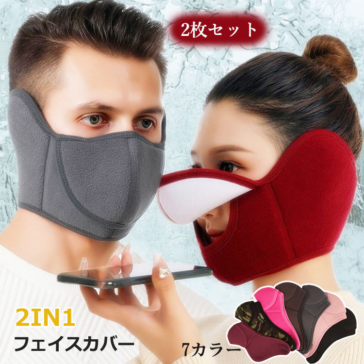 2枚セット 冬用 フェイスマスク 小顔効果 防寒保温 2in1 イヤーマフ一体型 息苦しくないフェイスカバー アウトドア 男女兼用 フェイスウォーマー 耳カバー あったか 防寒マスク スキー 自転車