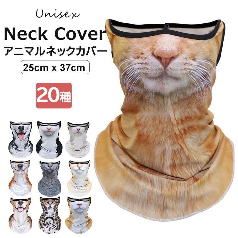 ネックガード メンズ レディース カット ネックカバー 面白い アニマル 動物柄 なりきり ネコ 犬 ライオンプリント フェイスガード アウトドア ゴルフ 顔 首