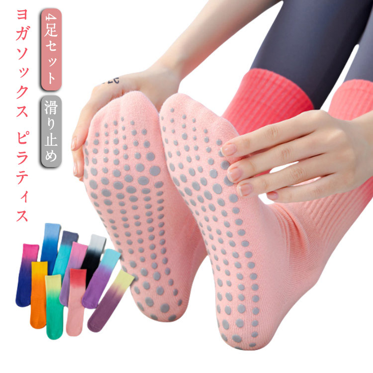 ヨガソックス ヨガ靴下 ピラティス 4足セット 滑り止め 靴下 タイダイ染め 綿 ロング ルームソックス おしゃれ 蒸れない 快適 かわいい ソックス レディース 滑りにくい ヨガウエア 通気性