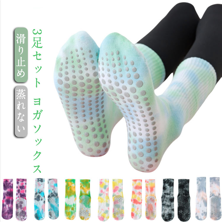 3足セット ヨガソックス 滑り止め 蒸れない おしゃれ 綿混 可愛い