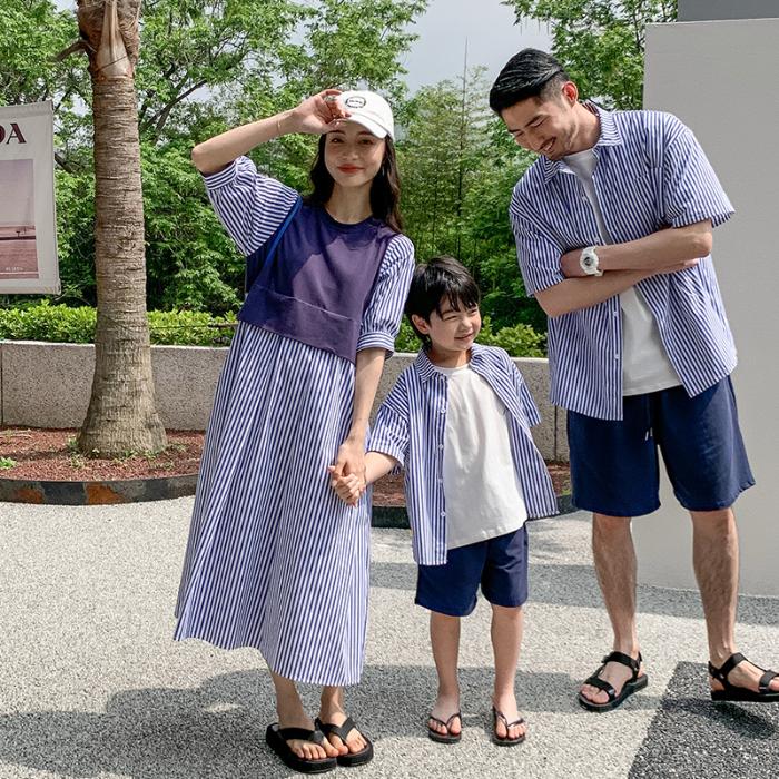親子コーデ 親子ペア 親子お揃い 親子ペアルック 家族お揃いライプ柄 ロングワンピース 子供 キッズ 旅行 海 ビーチ 遊び