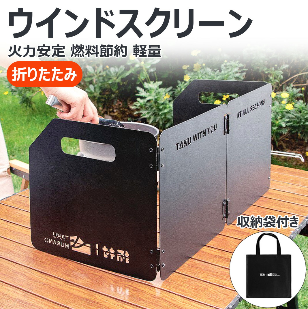 ウインドスクリーン 風よけ 風防 収納ケース付 アウトドア キャンプ 焚き火スクリーン 折りたたみ 収納ケース 焚き火台 調理器具 卓上 風除け 防風板 焚火