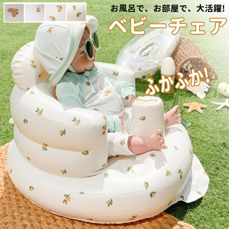 ベビーチェア ベビーバスチェア 赤ちゃん ベビーソファ お風呂用品 イス エアー ビニール コンパクト 空気入れ 持ち運び 折りたたみ お座り練習 食事用 椅子 旅行 収納便利 かわいい 出産準備 ケ