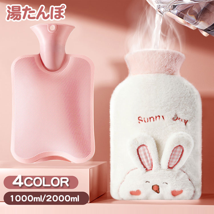 湯たんぽ ゆたんぽ 湯タンポ 注水式 お湯 容量1L 2L 柔らか もふもふ カバー付き かわいい 電気不要 節電 水枕 保温 防寒 冷え対策 ギフト あったかグッズ 暖房器具 生理期最適