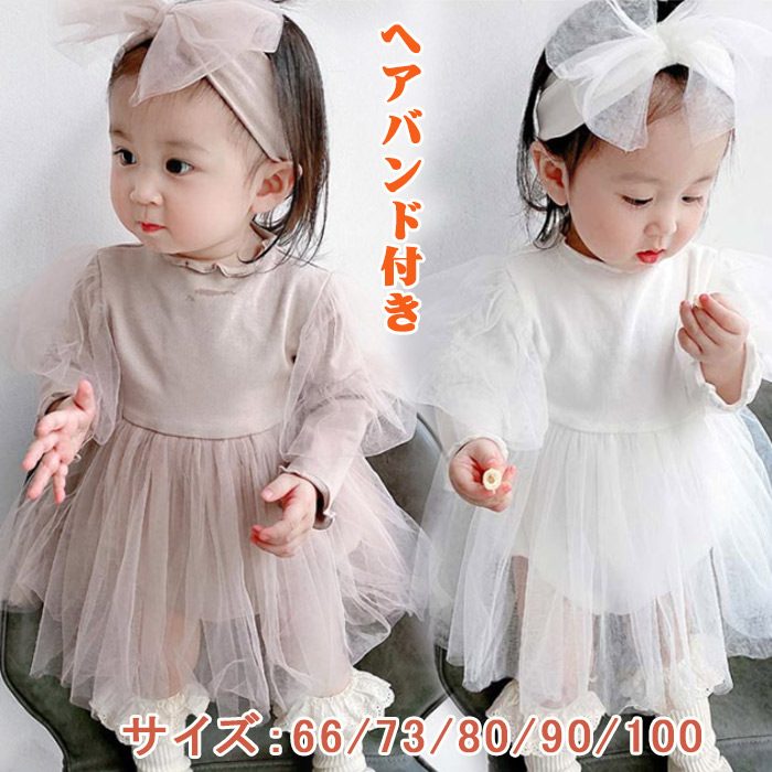 ヘアバンド付き ベビー服 カバーオール ロンパース 半袖 ベビー服 女の子 秋冬 ロンパース 66 73 80 90 ベビー服 ドレス ワンピース 可愛い キッズ 女の子 オシャレ 無地 レース
