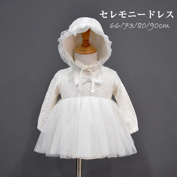 ベビードレス セレモニードレス 新生児 出産祝い 帽子付き 2点セット 60cm 70cm 80cm 長袖 女の子 退院 ワンピース 刺繍 チュール 出産準備 お宮参り用ベビードレス 100日 赤ちゃ