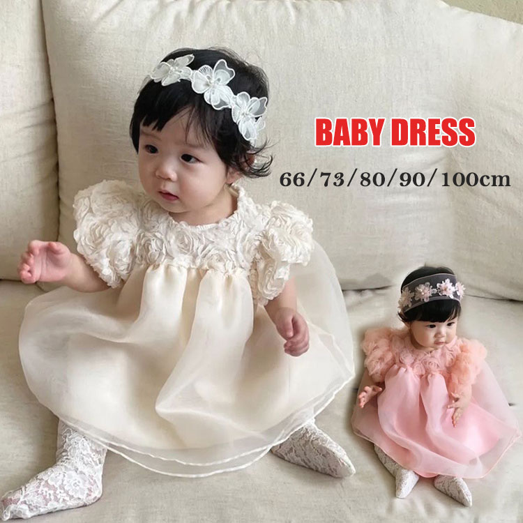 ベビー チュールドレス キッズ ワンピース 半袖 セレモニードレス ベビードレス ベビー服 女の子 赤ちゃん 子供服 子ども服 子ども かわいい おしゃれ 結婚式 記念写真撮影 66 73 80 90