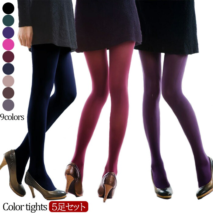 タイツ 10足組 レディース 春 秋 防寒 カラータイツ 無地 ブラック 黒 ベージュ フリーサイズ ストレッチ 伸びる らくらく