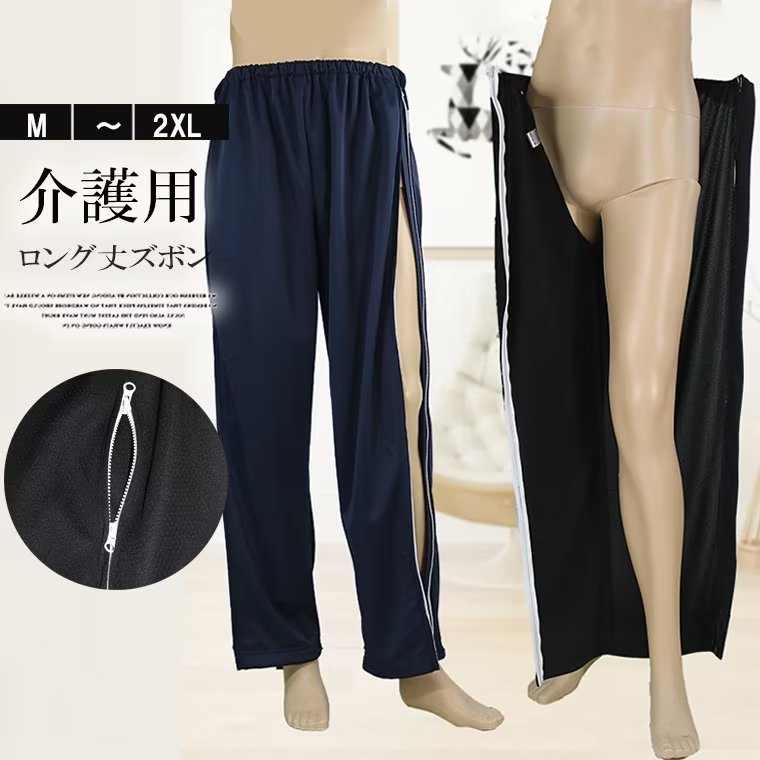 オールシーズン対応の2タイプ生地 ファスナー全開 フルオープン ロングパンツ レディース メンズ 両脇全開 介護ズボン ウエストゴム パンツの着替え 通院 着脱簡単 部屋着