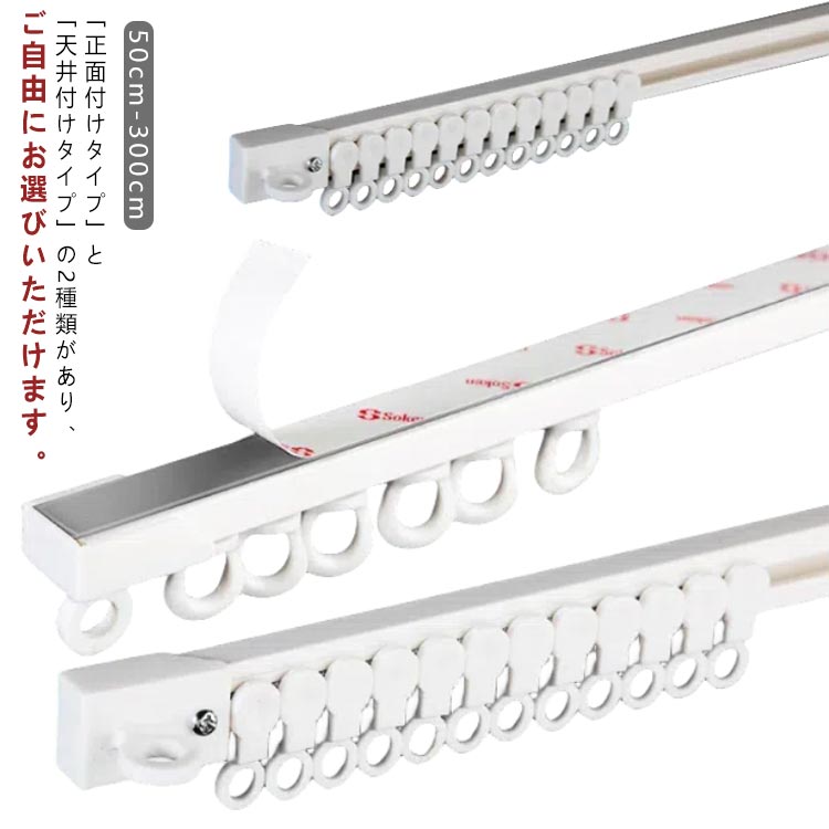 3m 調節可能 カーテンレール 粘着式 取付簡単 天井付け 天付け 長さ調整 正面付け 正面 両面テープ 二段ベッド用 静音性 頑丈 短い 耐荷重5kg キャップ 間仕切り ネジ打ち不要 貼り付け