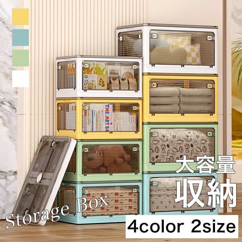 収納ケース フタ付き 前横開き 蓋つき 全方向から取り出せる おしゃれ 折りたたみ おもちゃ箱 透明防塵 防カビ 防湿 無臭 厚み 強い耐荷重 4色 3サイズ