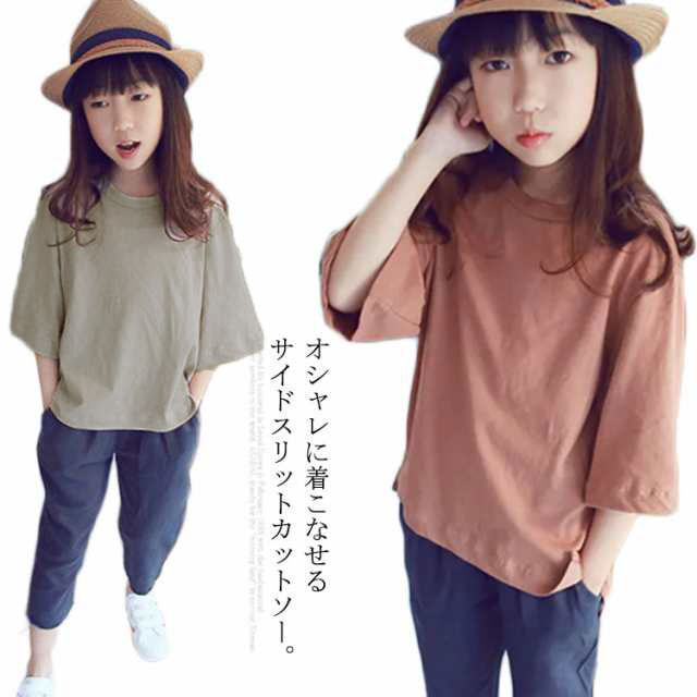 ゆるTシャツ 7分袖 子供服 ジュニア キッズ 女の子 トップス カットソー オーバーサイズ スリットスリット入り 120cm 130cm 140cm 150cm 160cm 165cm
