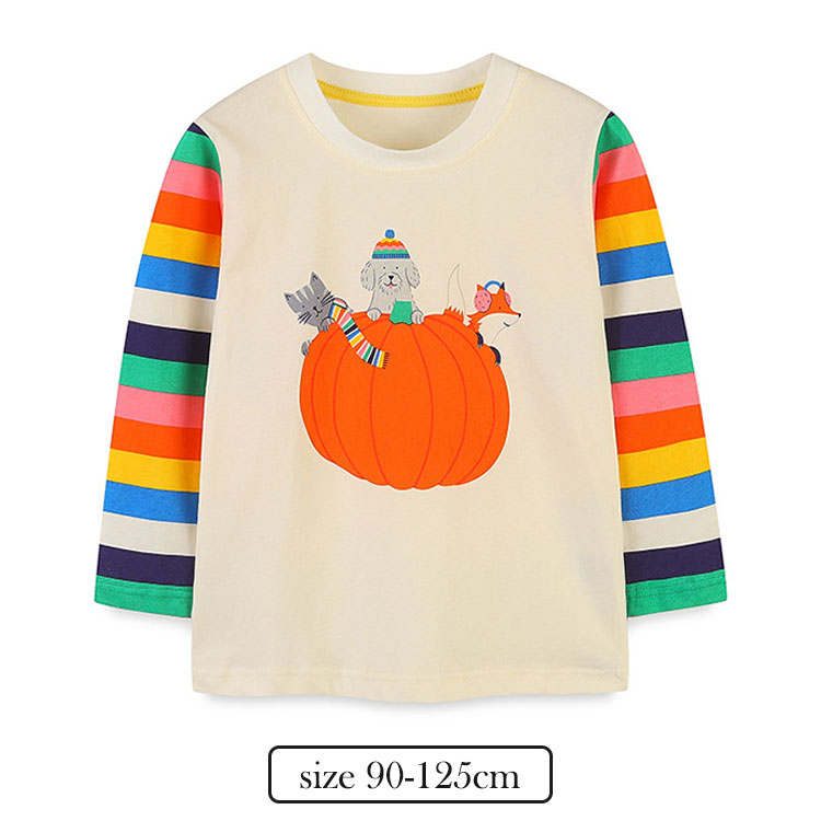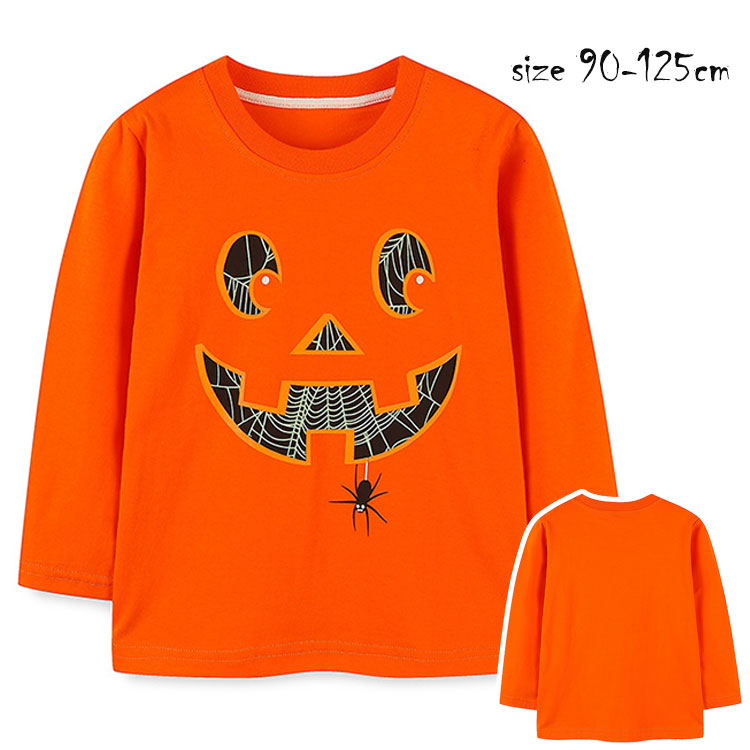 子供服 長袖 Tシャツ ハロウィン かぼちゃ柄 春秋 男の子 女の子 オレンジ 可愛い 通学 通園 クルーネック カットソー トップス ボーイズ ガールズ キッズ ベビー ハロウィーン衣装