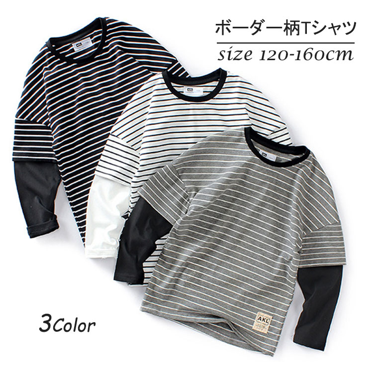 子供服 重ね着風 長袖 Tシャツ 春秋 韓国子ども服 ボーダー柄 120 130 140 150 160cm 男の子 女の子 ランドネック おしゃれ ジュニア キッズ ファッション カットソー カジュ