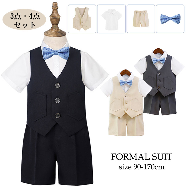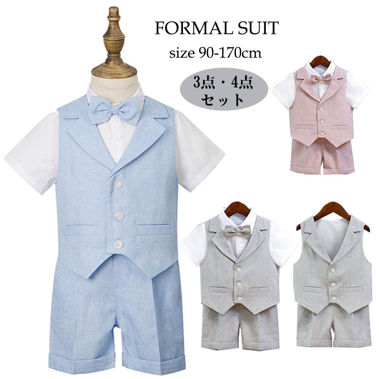 男の子 スーツ 3点セット 4点セット 半袖 キッズ ファッション フォーマルスーツ おしゃれ 男の子スーツ 無地 入学式 卒業式 結婚式 パーティー 発表会 誕生日プレゼント 七五三 子供服 半袖シ