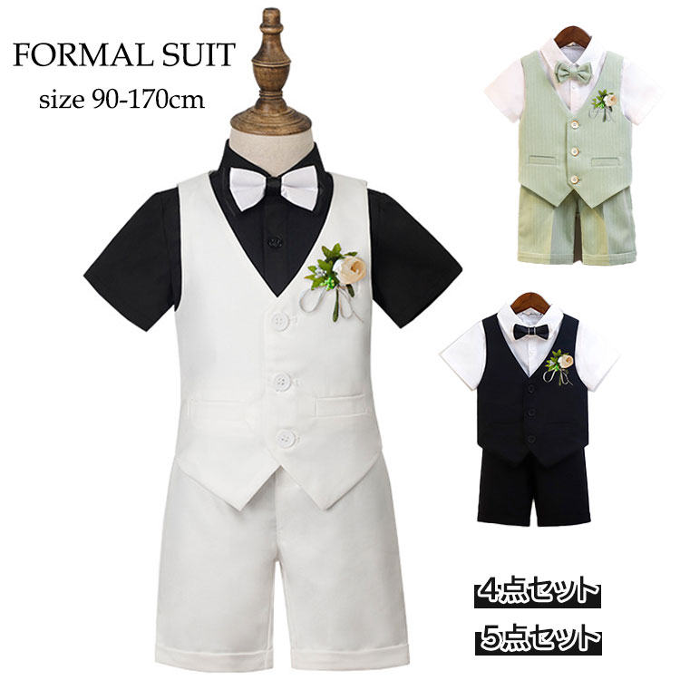 キッズ フォーマル スーツ 4点セット 5点セット 半袖 おしゃれ 男の子 男の子スーツ 無地 入学式 卒業式 結婚式 パーティー 発表会 誕生日プレゼント 七五三 子供服 半袖シャツ ベスト
