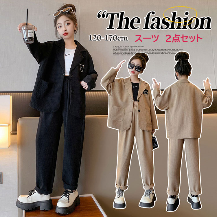 子供スーツ 女の子 男の子 韓国ファッション 黒 カーキ フォーマル スーツ パンツ パンツスーツ ジャケット 卒業式 七五三 入学式 結婚式 発表会 カジュアル レジャー 子供服 120 130 1