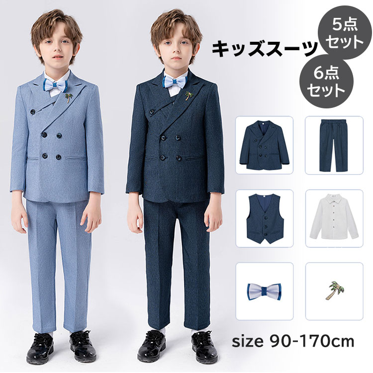 5点セット 6点セット 男の子 スーツ キッズ フォーマルスーツ 子供 ボーイズ 長袖 無地 卒業式 入学式 七五三 結婚式 発表会 演奏会 プレゼント 90 100 110 120 130 140