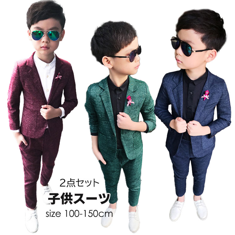男の子スーツ カジュアル スーツ 3色 2点セット 子供スーツ キッズ 高品質 子供服 入学式 卒業式 紳士服 発表会 演奏会 プレゼント 100 110 120 130 140 150cm ワインレ