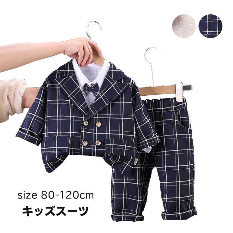 男の子スーツ フォーマルスーツ 3点セット 80 90 100 110 120cm 子供 チェック柄 キッズ 子供服 七五三 お宮参り 紳士服 入学式 卒業式 入園式 卒園式 プレゼント