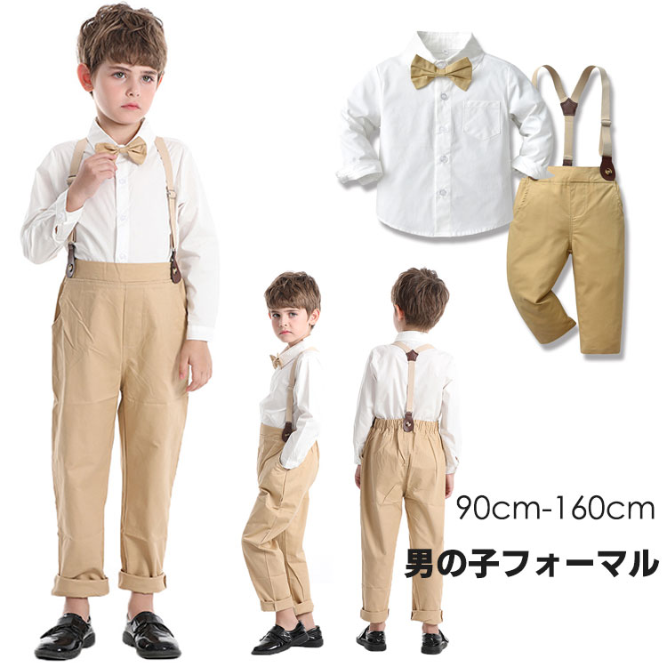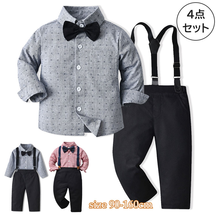 男の子 フォーマル 4点セット 子供 スーツ 子供服 ベビー服 長袖シャツ 長ズボン 蝶ネクタイ サスペンダー おしゃれ 七五三 結婚式 初節句 着心地抜群 お誕生日 プレゼント 90-160cm グ